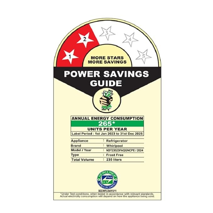 - Energy Rating 2 Star: Best in class efficiency | Annual Energy consumption – 265* Units Per Year (Please refer BEE label for more information), Model/Year : NDT23523FAQGNCPE/2024.